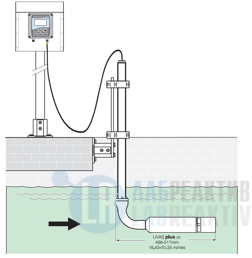 Байпасс вариант датчика UVAS plus sc используется в тех случаях, когда непосредственное измерение в образце невозможно по техническим причинам или когда состав образца требует его предварительной фильтрации (очень высокое содержание взвешенных веществ, входная вода очистных сооружений, промывные карьерные воды и др.).