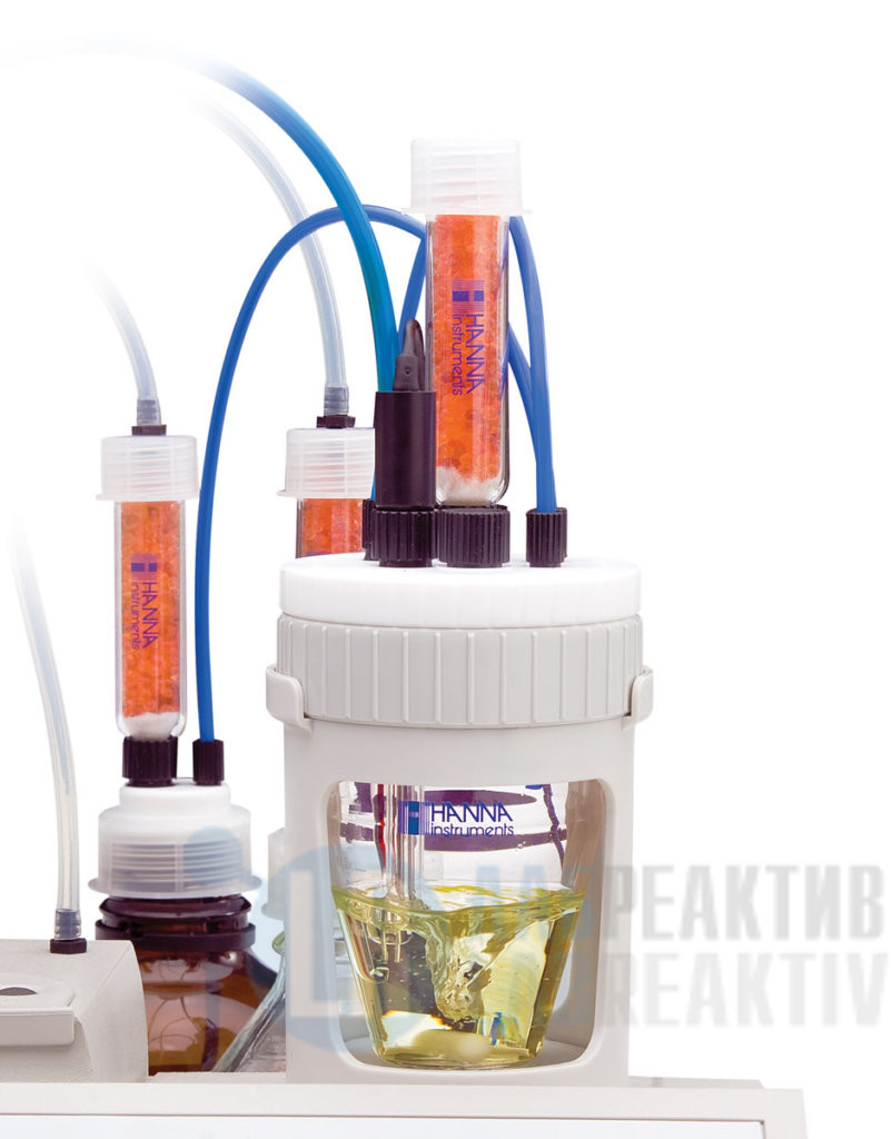 Сосуд для титрования выполнен полностью герметичным для минимизирования воздействия влажности из окружающей среды, поддержания системы в сухом состоянии и уменьшения потребления титранта, при этом экономя время между титрованиями. Растворитель можно сменить в считанные секунды не открывая сосуд для титрования.
