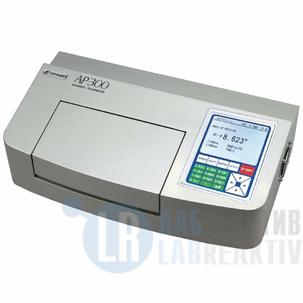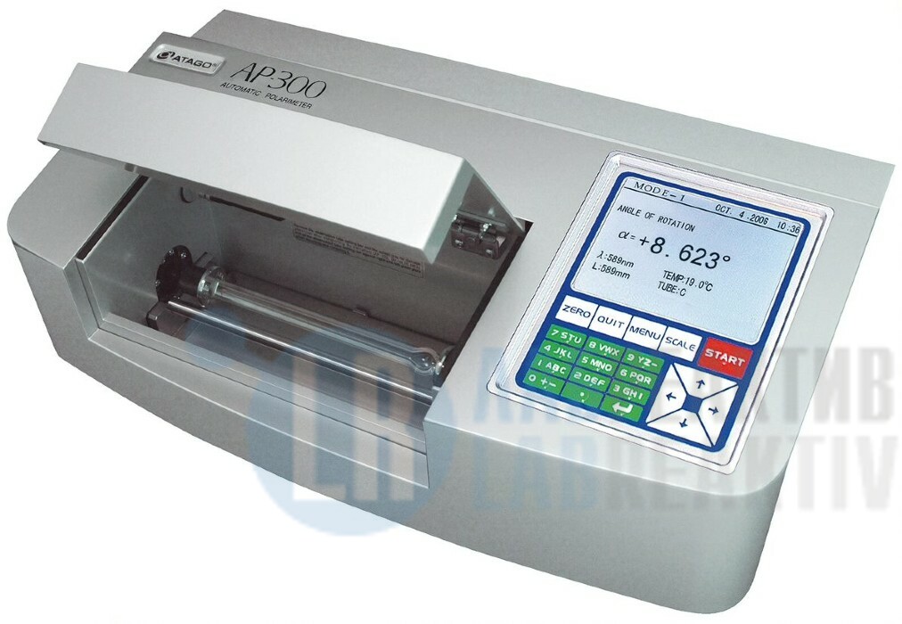 АР-300 — первый полностью автоматический поляриметр от компании ATAGO. Прошло много лет, а данный прибор по прежнему самый популярный автоматический поляриметр ATAGO. Его любят за простоту, надежность, высокий ресурс и невысокую стоимость. Процедура выполнения измерения очень проста: достаточно лишь заполнить исследуемой жидкостью специальную кювету, установить на направляющие в испытательной камере и нажать на кнопку START. Прибор оснащен удобной и надежной кнопочной панелью управления, которая выдерживает более суровую эксплуатацию, например, при приемке и контроле входящего сырья. Автоматический поляриметр АР-300 в основном используется для измерения угла вращения в фармацевтической, парфюмерной, косметической, химической, сахарной промышленности и в продовольственной индустрии. Встроенная международная сахарная шкала широко используется в сахарной промышленности, а также на кондитерских предприятиях.