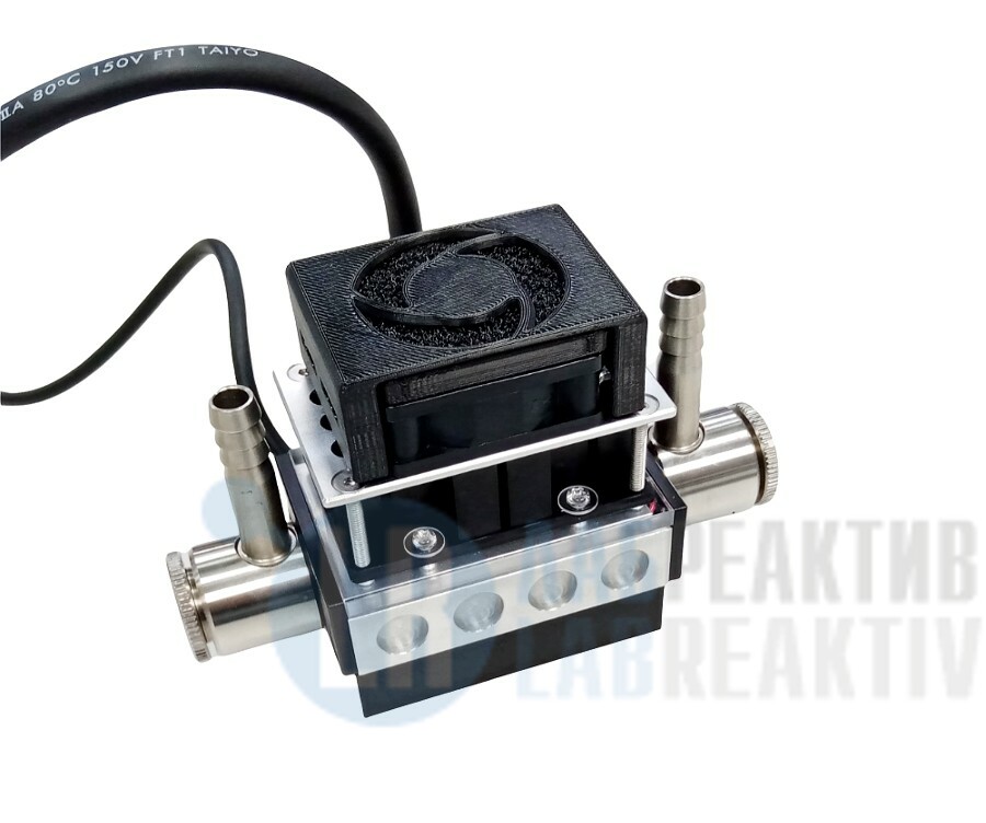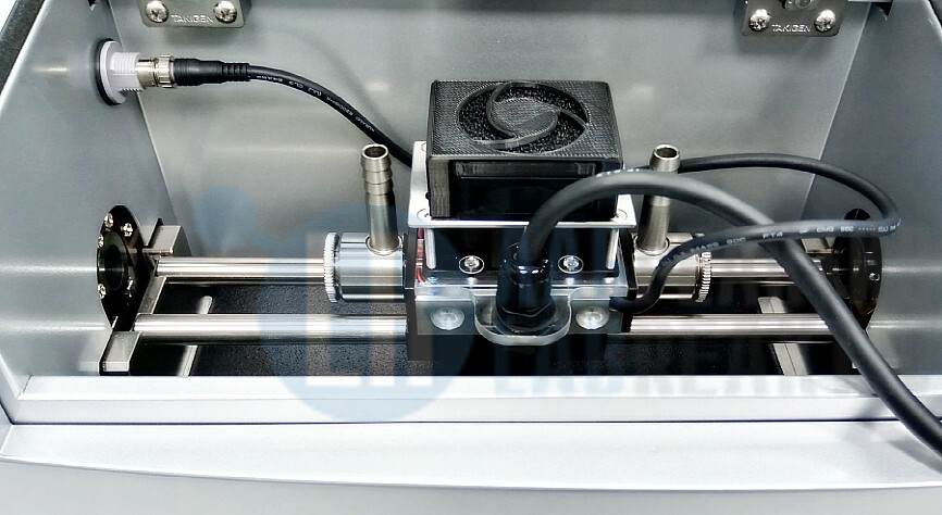 Термостатируемая ячейка размещается внутри камеры для образцов, а температура настраивается и регулируется с помощью блока управления снаружи. После установки температуры термостат автоматически доводит образец для нужной температуры и поддерживает ее во время измерений. Необходимо отметить, что данный тип термостатирования подходит для проведения измерений с кюветой длиной 100 мм.