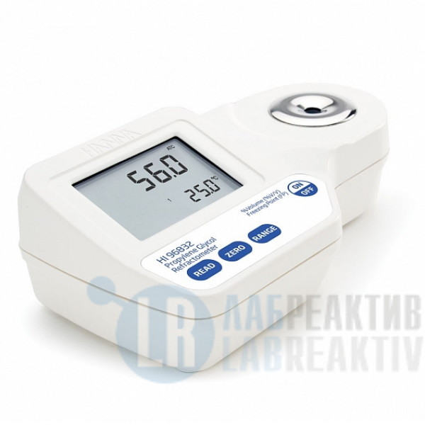 В цифровом рефрактометре HI96832 используются измерения показателя преломления для определения объёмного содержания в % и температуры замерзания растворов на основе пропиленгликоля. Пропиленгликоль используется в промышленности в системах охлаждения гликоля, а так же в системах дозирования пищевых продуктов, таких как пиво и вино. Поддержание соответствующего объёмного содержания в % гликоля важно для гликолевых теплообменников, поскольку слишком низкое содержание гликоля может привести к замерзанию и прорывам в системе, в то время как слишком высокое содержание гликоля уменьшает эффективность работы системы. Прибор преобразует значения показателя преломления образца в объёмное содержание в % или температуру замерзания. Эти преобразования основаны на международно-признанных справочниках по пересчёту единиц измерения и температурной компенсации для растворов гликоля (например, Справочник по химии и физике CRC, 87-е издание). HI96832 является простым в использовании прибором для измерения температуры замерзания и процентного объема пропиленгликоля в растворах в производственных условиях или в лаборатории.
