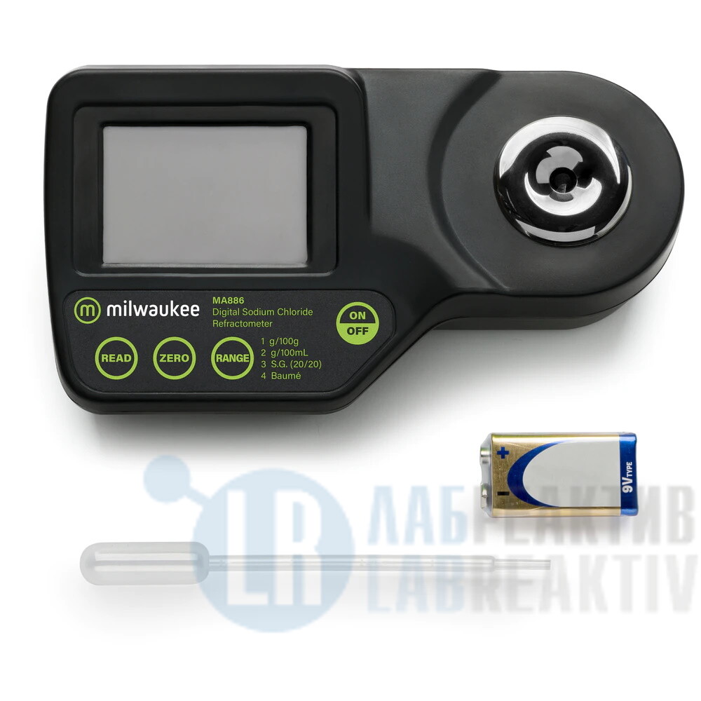 Цифровой рефрактометр MA886 использует показатель преломления для определения концентрации хлорида натрия в водных растворах, используемых при приготовлении пищи. MA886 не предназначен для измерения солености морской или аквариумной воды. Используйте MA887 для этого приложения.