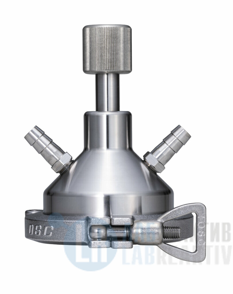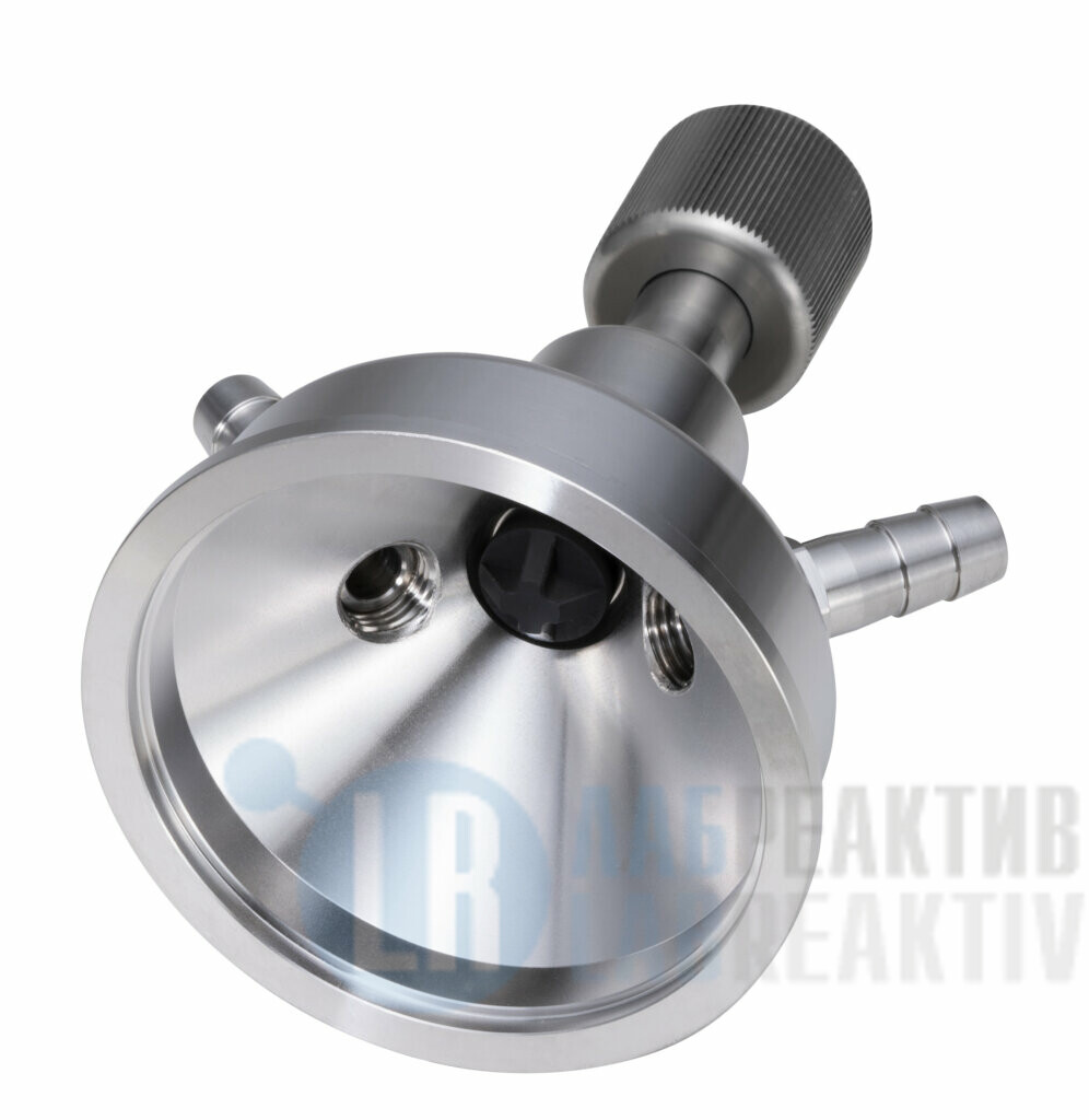 Данный опциональный аксессуар включает в себя проточную ячейку под гибкие шланги с диаметром 12 мм. В ячейку встроен механический очиститель призмы. Благодаря этой опции вы можете подводить образец к измерительной части рефрактометра по гибким шлангам и производить очистку поверхности призмы от налипающего образца, без демонтажа рефрактометра.