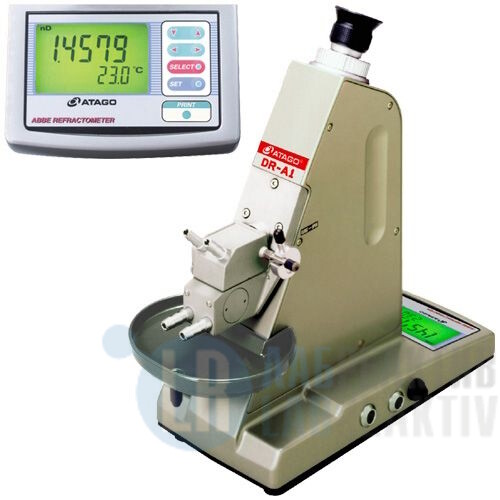 DR-A1 может передавать данные на персональный компьютер или принтер. Имеет более яркое поле зрения, что делает его более подходящим для измерения негомогенных и темных образцов. Рефрактометр также позволяет работать с твердыми образцами: пленки, стекла. Может комплектоваться внешней водяной баней — циркулятором. DR-A1 оснащен функцией автоматической температурной компенсации для шкалы Брикс.