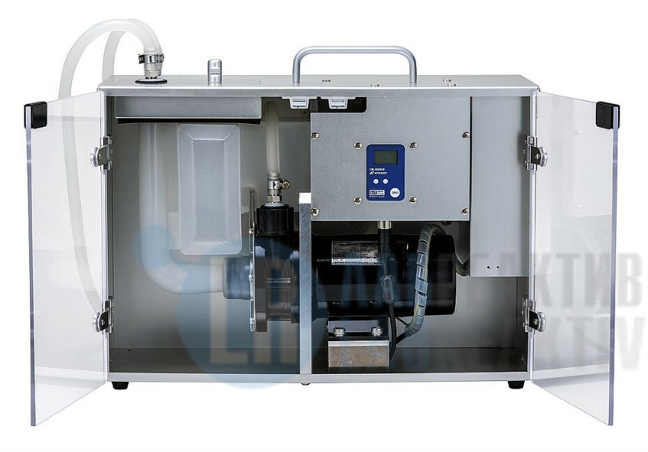 Это портативная установка и может использоваться в качестве демонстрационного комплекта для различных устройств и станков, в работе которых используется СОЖ.