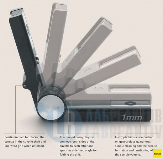 - Кювета для измерения высоких концентраций в малых объемах, мкл — 1,5–10;