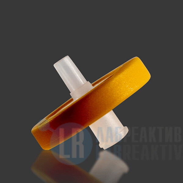 Нестерильные шприцевые фильтры PTFE гидрофобные, оранжевые, 25 мм, 0.45 мкм, 100 шт./упаковка, Lab-Support, Китай.
