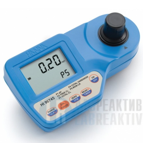 Портативный фотометр на рН, свободный и общий хлор, общую жёсткость и низкий диапазон железа HI96745 сочетает в себе точность и простоту использования с эргономичным, портативным дизайном. Используя готовые реагенты, пользователь может точно определить рН, концентрацию свободного и общего хлора, общую жёсткость и содержание железа. В приборе HI96745 реализовано большое количество современных функций, включая эксклюзивную функцию CAL Check™ используемую для проверки работоспособности и калибровки прибора.