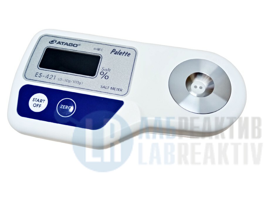 Цифровой солемер ES-421 разработан для измерения концентрации соли в различных продуктах, таких как: маринады, соусы, кетчупы, пастообразные вещества, твердые продукты (мясо, рыба, сыр) и т. д. Солемер ES-421 разработан на базе рефрактометров серии Palette, а это означает, что надежность и стабильные измерения обеспечены на долгий эксплуатационный период. На измерительной секции прибора установлены надежные титановые электроды. Сама измерительная ячейка изготовлена из стали SUS316L. Функция «оффсет» позволяет вводить свои поправочные коэффициенты. Калибруется прибор по пустой ячейке.