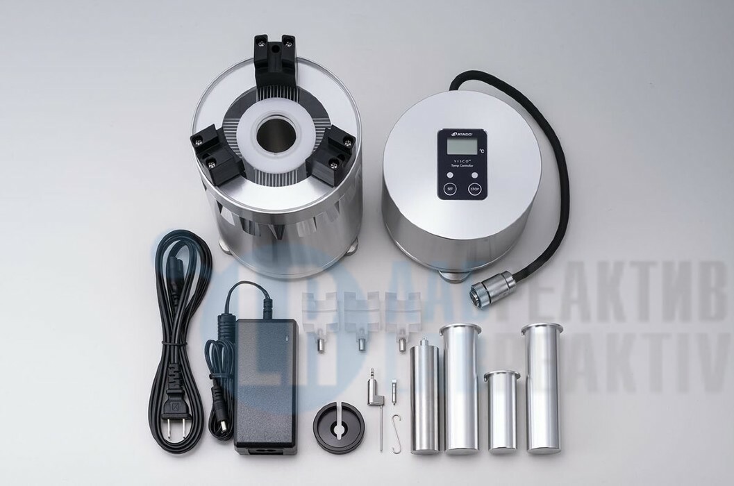 VISCO Температурный контроллер (UL SET) представляет собой легкий и компактный прибор для точного контроля температуры. Предназначен для совместной работы с вискозиметром VISCO и его модификацией VISCO-895. Данный комплект имеет все необходимые аксессуары для работы с вискозиметрами VISCO, VISCO-895, включая комплект для работы с маловязкими образцами. Температурный контроль основан на технологии использования элементов Пельтье. Поскольку температура сильно влияет на вязкость, очень важно контролировать температуру образца при работе с вискозиметром. При использовании водяной бани возникает ряд трудностей в работе, такие как: увеличенное время термостатирования всей системы, громоздкость, большие площади на рабочем столе, подготовка воды и обслуживания водяной бани-циркулятора. VISCO Temp Controller устраняет все эти сложности.