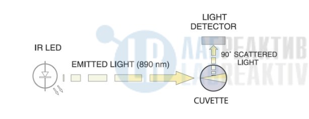Проходящий через образец световой луч рассеивается во всех направлениях. Интенсивность и характер рассеянного света зависит от многих параметров, таких как длина волны падающего света, размер и форма частиц, показатель преломления и цвет. Оптическая система HI88713 состоит из светодиода, детектора рассеянного света (90°) и детектора проходящего света (180°). Какие именно детекторы используются зависит от режима измерения.