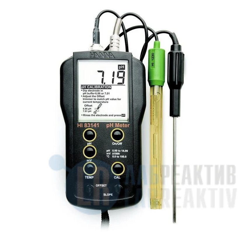 HI 83141 – это компактный, влагостойкий, портативный рН/мВ/°С в комплекте с пластиковой коробкой, ПЭИ рН электродом, датчиком температуры из нержавеющей стали, пакетиками с калибровочными и чистящими растворами. Прибор с 2-х точечной ручной калибровкой и автоматической термокомпенсацией, повышающей точность измерений.