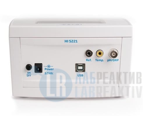 HI5221 поставляется с рН электродом HI1131B , термодатчиком HI7662-T, штативом HI76404W, пакетиками буферных растворов HI70004 pH 4.01 и HI70007 pH 7.01 , раствором для очистки электрода HI700601 (2 шт), раствором электролита HI7082 3,5 M KCl (30 мл), 12 VDC адаптером и инструкцией.