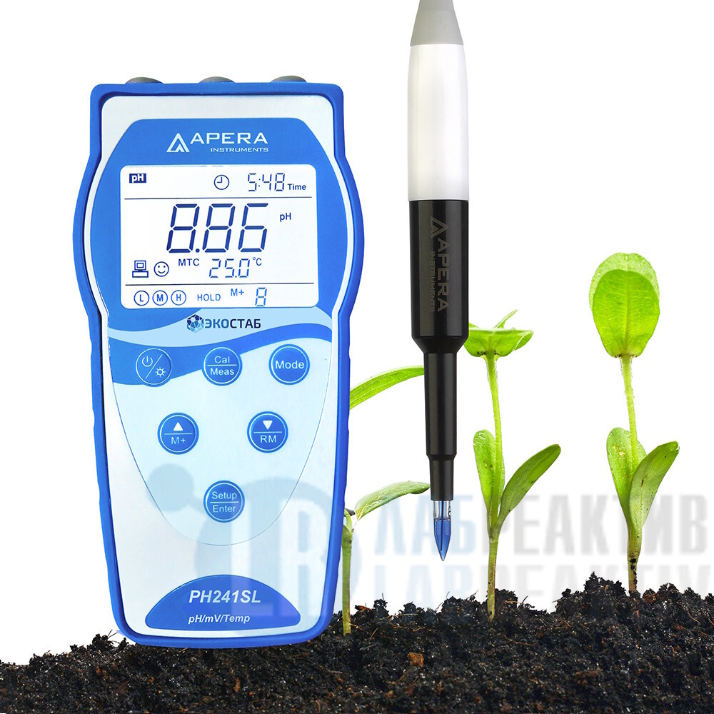 Портативный pH-метр ЭКОСТАБ PH241SL оснащен электродом LabSen® 553 с корпусом из PVC-пластика и прочным наконечником конической формы, предназначенным для проведения прямых измерений pH почвы.
