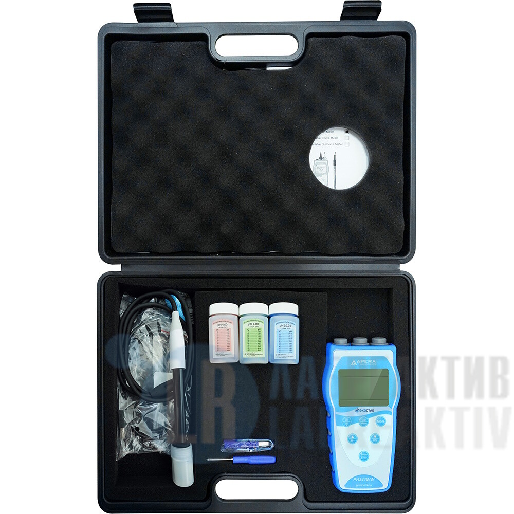 Модель идеально подходит для использования в полевых условиях. Корпус со степенью пыле- и влагозащиты IP57, оснащен силиконовой защитной накладкой на разъемы подключения датчиков и накладкой на корпус, которая защищает инструмент от ударов. Большой ЖК-дисплей отображает pH/мВ и температуру, индикаторы стабильных показаний и завершенных калибровок. Складная подставка позволяет использовать прибор в качестве настольного.