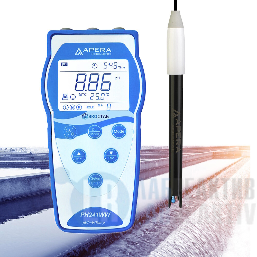 Портативный pH-метр ЭКОСТАБ PH241WW оснащен электродом pH/температуры LabSen 333 c открытой диафрагмой и твердым электролитом, что предотвращает его загрязнение. Электрод специально предназначен для профессионального измерения pH сточных вод, эмульсий и других мутных водных растворов, содержащих сульфиды и белки.