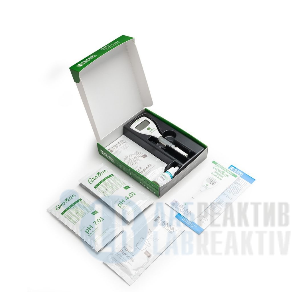 HI981030 GroLine Soil pH Tester поставляется с буферами pH 4,01 (2 саше.); pH 7,01 (2 саше.); очищающим раствором от почвенных отложений; раствором для очистки от гумуса; раствором для хранения электрода, 13 мл капельницей; раствором для заполнения электрода; инструкцией по эксплуатации; заводским сертификатом