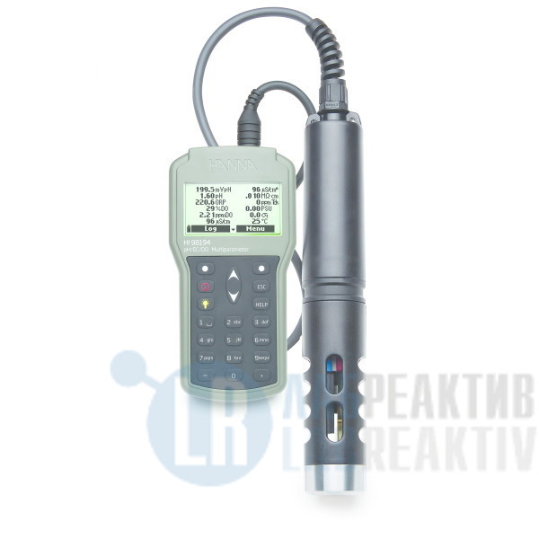 HI98194 представляет собой водонепроницаемый, портативный, регистрирующий, многопараметровый прибор, способный контролировать до 12 различных параметров качества воды, включая 6 измеряемых и 6 вычисляемых. Многосенсорный датчик с микропроцессором позволяет измерять ключевые параметры, такие как pH, ОВП, проводимость, растворённый кислород и температуру. Датчик передает показания в цифровом виде в прибор, в котором данные могут отображаться и регистрироваться. HI98194 поставляется со всеми необходимыми принадлежностями, упакованными в прочный футляр для транспортировки. Прибор поставляется с 4 метровым кабелем. По отдельному заказу возможно оснащение прибора 10, 20 или 40 метровым кабелем.
