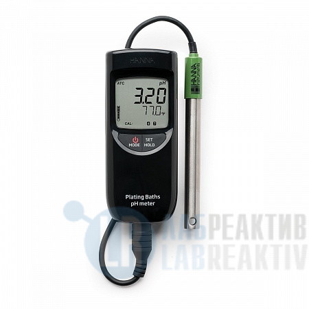 Прибор HI99131 представляет собой долговечный, водонепроницаемый и портативный измеритель рН и температуры, разработанный специально для использования в гальванических ваннах. В приборе используется рН электрод HI62911D с усилением сигнала и двойной диафрагмой, характеризующийся утопленным и легко очищаемым плоским чувствительным элементом, что предотвращает его загрязнение твёрдыми отложениями из растворов. Титановый корпус электрода HI62911D функционирует в качестве потенциального согласующего контакта, что повышает стабильность измерений и продлевает срок службы.