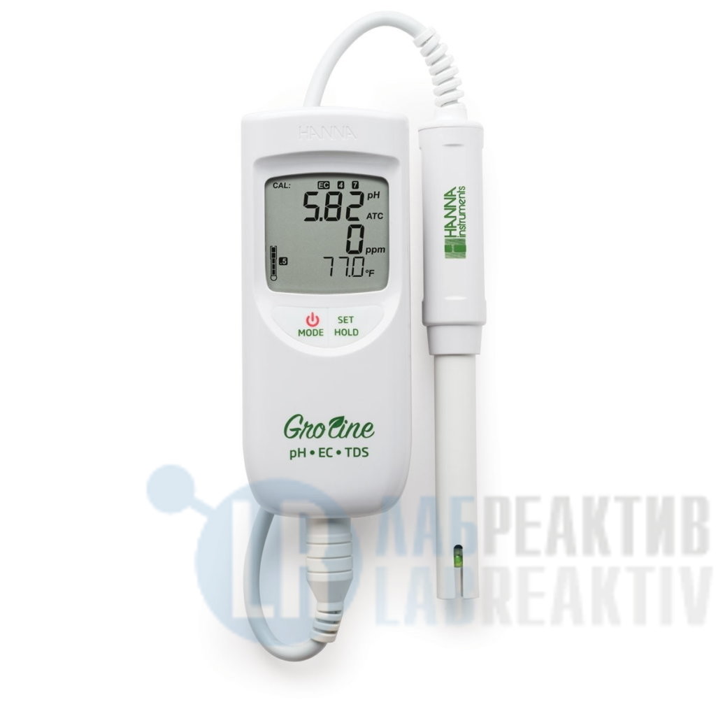 Портативный измеритель GroLine HI9814, разработанный для упрощения тестирования питательных веществ, разработан специально для производителей гидропонных растений. Специализированный электрод объединяет 3 датчика в одном прочном зонде с полипропиленовым корпусом, встроенным датчиком температуры и тканевым соединением.