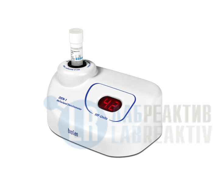 Денситометр DEN-1 предназначен для измерения мутности клеточных суспензий в пределах диапазона 0,3–5,0 единиц МакФарланда (McF) (100 x 106–150 x 107 клеток/мл).