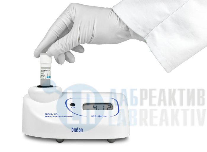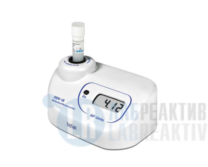 Денситометр DEN-1B предназначены для измерения мутности клеточных суспензий в пределах диапазона 0,0–6,0 единиц МакФарланда (McF) (0 – 180×107 клеток/мл).