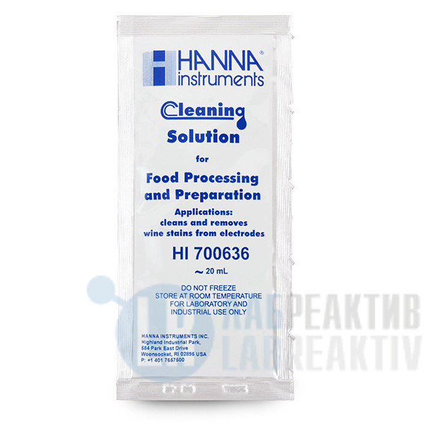 Компания «Hanna» разработала полную линейку чистящих и дезинфицирующих растворов, которые эффективно удаляют примеси и остатки грязи с поверхности электрода, который погружается в раствор. Сюда относятся винные пятна, масла, остатки грунта, промышленные составы, жиры, водоросли и молокопродукты.