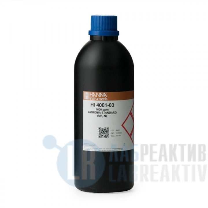 HI4001-03 представляет собой бутылку объемом 500 мл стандартного раствора аммиака высшего качества с концентрацией 1000 ppm (мг/л) (в виде NH 3 -N).