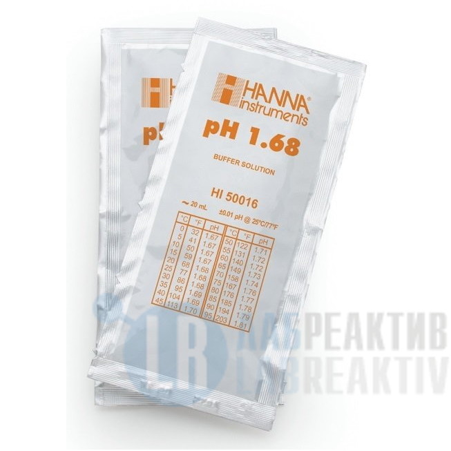 HI50016-02 наградной качественный буфер тарировки pH 1.68 технический который NIST traceable и поставленный с сертификатом анализа. Каждый пакетик имеет номер партии и дату окончания срока годности, проставленный на нем, и изготовлен из светлой блочной фольги, обеспечивающей свежесть каждый раз, когда он открывается. Линия технических буферов тарировки Hanna специально была сформулирована для того чтобы иметь срок годности 5 лет от даты изготовления для неоткрытого sachet. HI50016-02 предназначено для 25 пакетиков, содержащих 20 мл буфера.