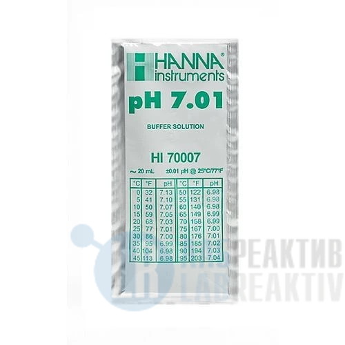 HI77700P представляет собой буферный раствор pH 7.01 высшего качества. Каждый пакетик имеет номер партии и дату истечения срока годности и изготовлен из легкой блочной фольги, обеспечивающей свежесть при каждом открытии. Линия калибровочных буферов Hanna была специально разработана, чтобы иметь срок годности 5 лет с даты изготовления для неоткрытого пакетика. HI77700P предназначен для 10 саше с pH 7,01, каждый из которых содержит 20 мл буфера.