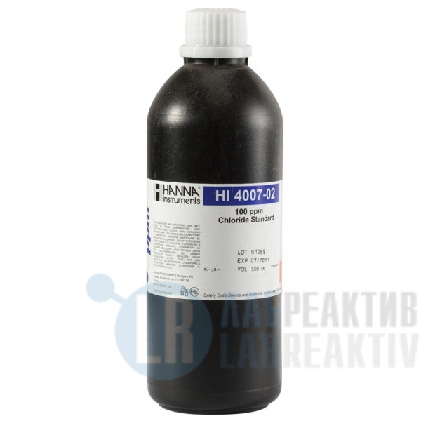 HI4007-02 представляет собой 500 мл бутылку стандартного раствора хлоридов 100 мг/л (частей на миллион) высшего качества.