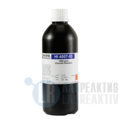 HI4007-03 представляет собой 500 мл бутылку стандартного раствора хлоридов 1000 мг/л (частей на миллион) высшего качества.