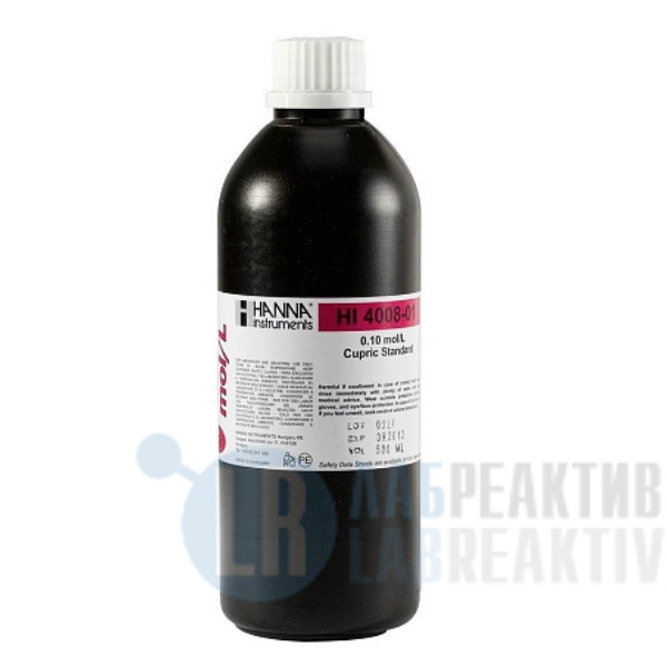 HI4008-01 представляет собой 500 мл бутылку 0,1 М стандартного раствора ионов меди II высшего качества.