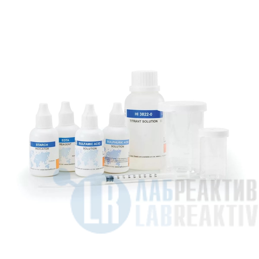 | Информация для заказа | набор химических реагентов HI3822 поставляется с 30 мл раствора сульфаминовой кислоты, 30 мл реагента ЭДТА, 15 мл раствора серной кислоты, 10 мл крахмального индикатора, 120 мл раствора титранта, мерным стаканчиком на 20 мл, мерным стаканчиком на 50 мл и мерным шприцом с наконечником. |