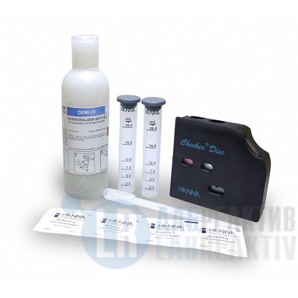 | Информация для заказа | тест набор HI38018 поставляется с реагентом HI93701-0 на свободный хлор (200 пакетиков), бутылка-деминерализатор с крышечкой (ресурс 12 л), диск checker, стеклянные виалы с крышками (2) и пластиковая пипетка на 3 мл. |