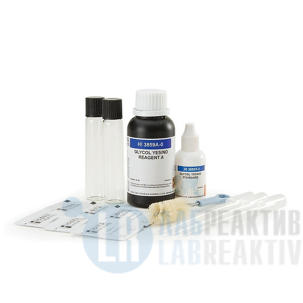 HI3859 представляет собой набор химических реагентов для определения присутствия гликолей визуальным методом. HI3859 поставляется в комплекте со всеми реагентами и оборудованием, необходимыми для выполнения примерно 25 измерений.