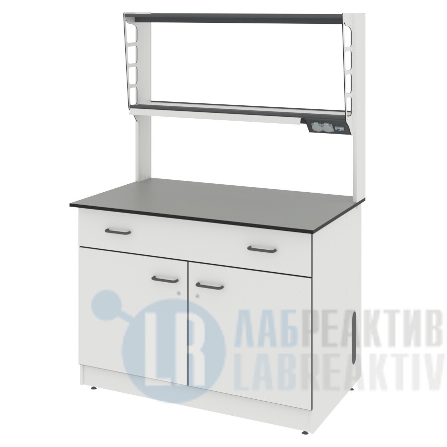 — сервисная панель – алюминиевый профиль, окрашенный порошковой краской (RAL 7011) с фактурой «шагрень», установлена на расстоянии 350 мм от рабочей поверхности стола