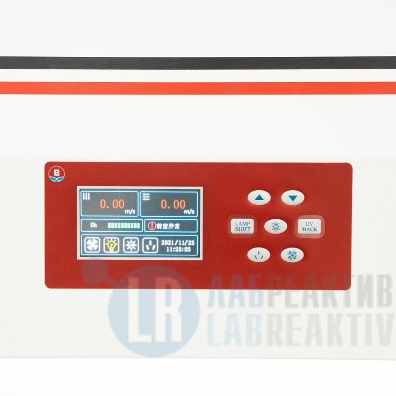 • Защищенное переднее окно, фильтр HEPA (уровень ISO — 5), эффективность фильтрации частиц пыли размером 0.3 мкм может достигать более 99.995% (опционально высокоэффективный фильтр ULPA (уровень ISO — 4);