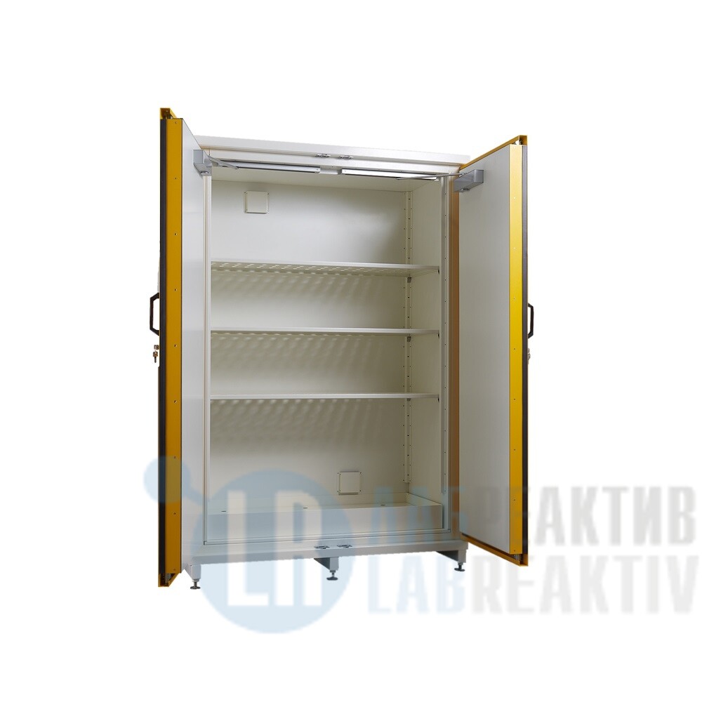 Шкаф предназначен для безопасного хранения ЛВЖ, обладает огнестойкостью для защиты хранящихся веществ от возгорания и пожара в соответствии с международным стандартом ЕN 14470-1. Имеет класс огнестойкости 90 минут ( в случае пожара обеспечивает температуру в объёме хранения безопасной в течении 90 минут).