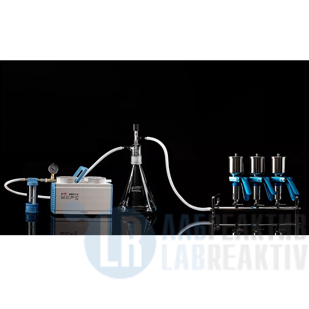 Вакуумная фильтрация с многоветвевыми коллекторами — необходимое оборудование для фильтрации растворителей в лабораториях. Это удобно и эффективно для оператора, которому необходимо фильтровать несколько проб одновременно. Каждый держатель фильтра имеет отдельный регулирующий клапан, только один комплект вакуумного насоса может поддерживать фильтр одно- или многоветвевого коллектора вместе.