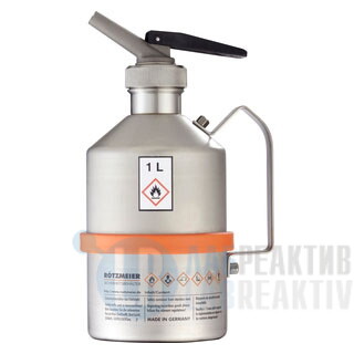 Фляга Rötzmeier 01DU с самозакрывающимся дозатором изготовлена из неполированной нержавеющей стали и предназначена для хранения легковоспламеняющихся жидкостей.