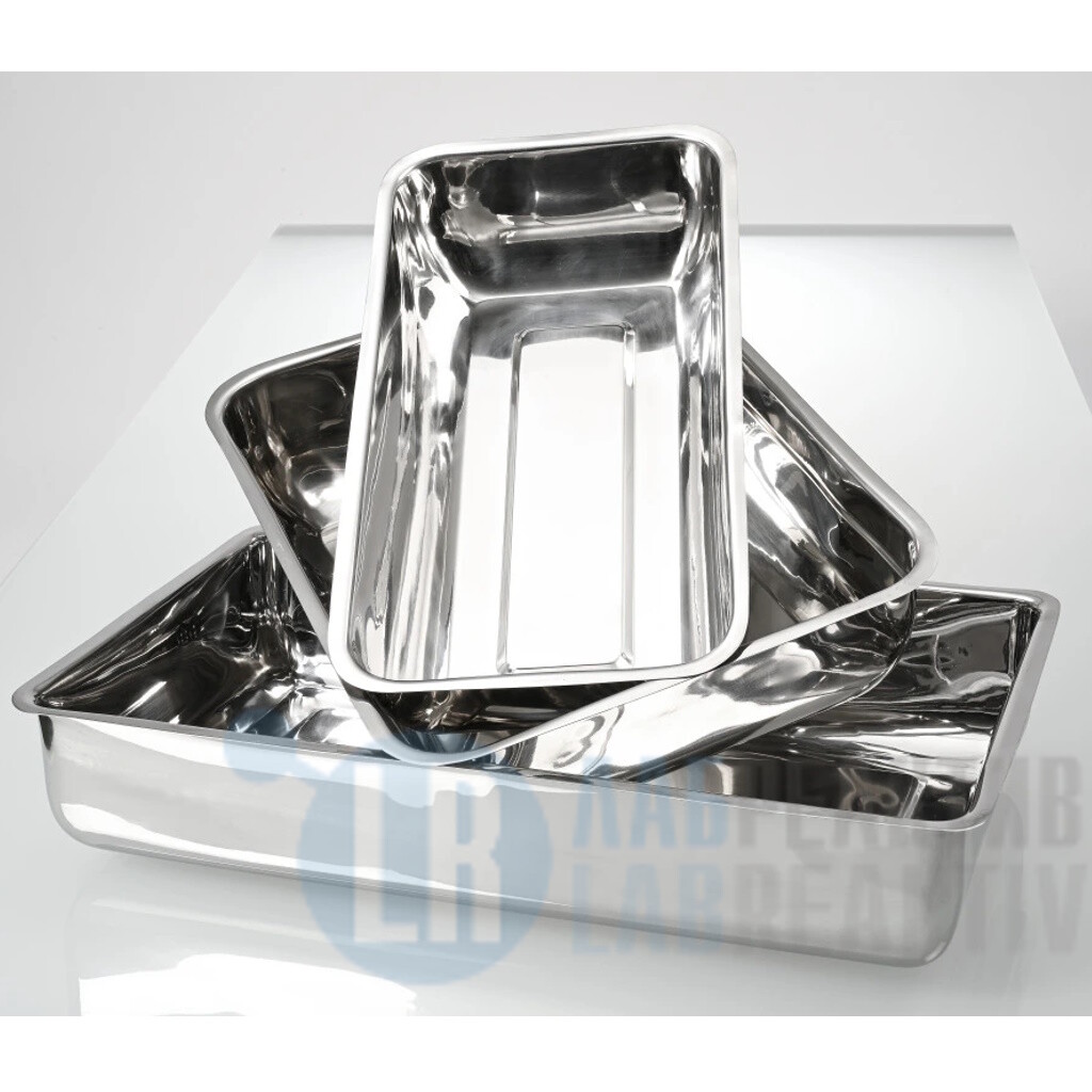 Кювета из нержавеющей стали подходит для широкого спектра применения, например, для хранения, переноски или очистки лабораторных приборов или пробоотборников. Гладкая поверхность облегчает очистку.