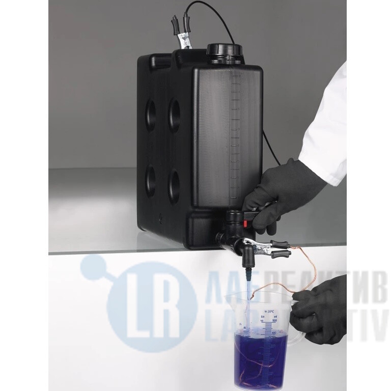Компактный электропроводящий набор состоит из компактной канистры 5 л (0435-2055) или 10 л (0435-2105) и сливного крана «СтопКок ПА» (StopCock PA) (0525-1100). Кран и канистра могут заземляться с помощью комплекта для заземления и использоваться на взрывобезопасных участках.