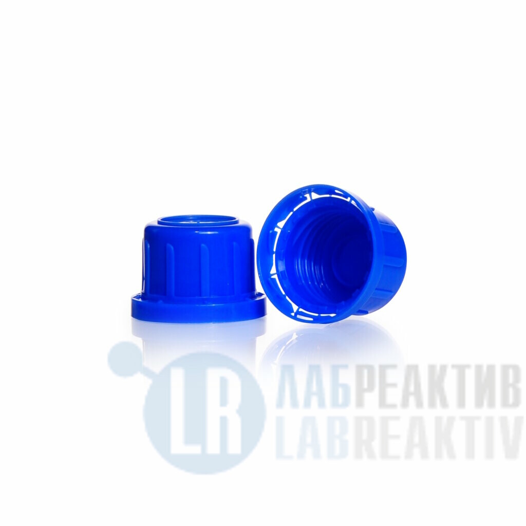 Синяя полипропиленовая крышка без вкладыша с защитой от несанкционированного вскрытия для бутылок из натриево-кальциевого стекла с узким горлышком и высокой формой резьбы DIN.