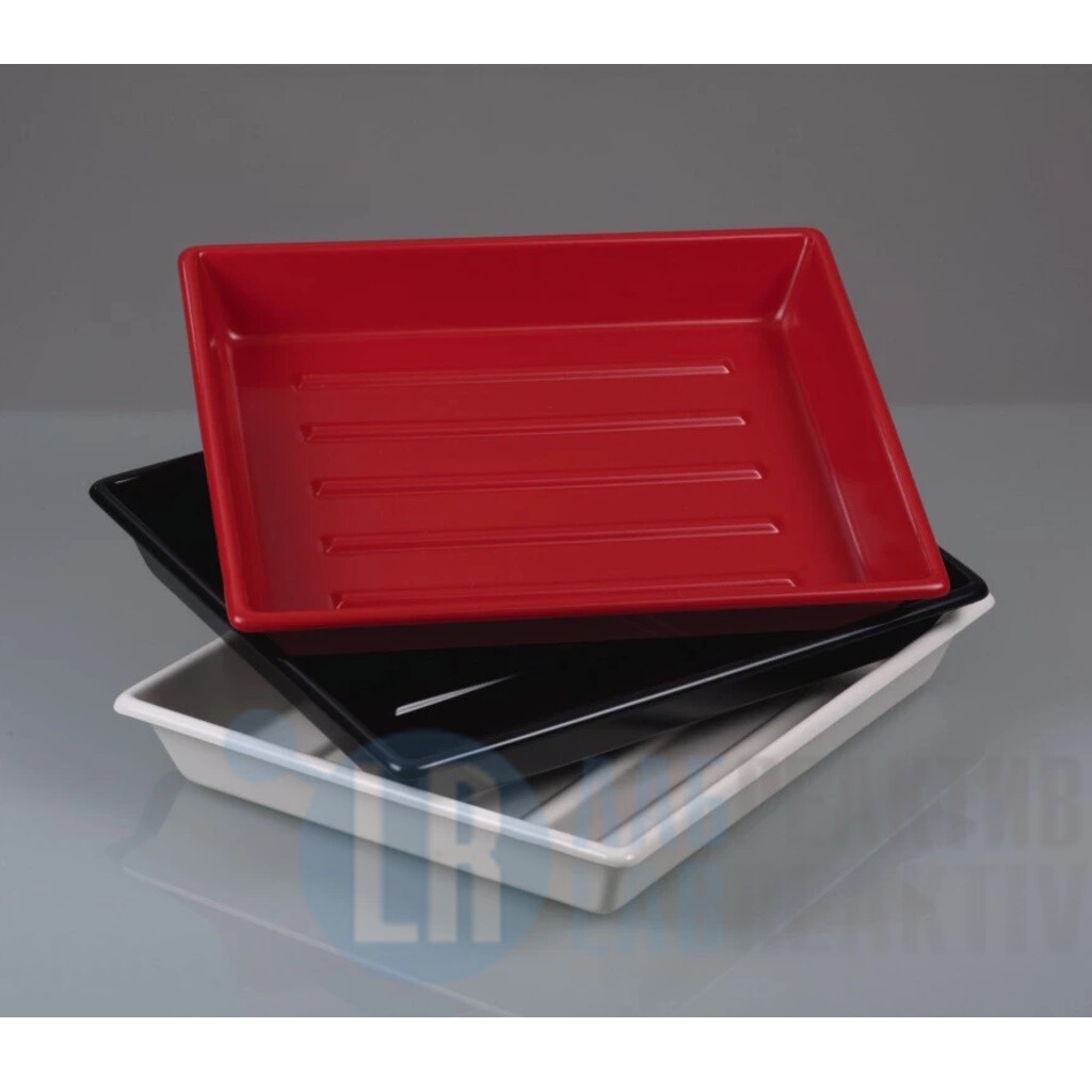 Данные кюветы из ПВХ отличаются разнообразием форм и цвета. В продаже имеются глубокие и мелкие кюветы, с ребрами на дне и без них. Кюветы имеют яркие заметные цвета: белый, красный и чёрный. Кюветы с ребрами на дне наилучшим образом подходят для проявления фотобумаги. Наличие ребер препятствует прилипанию фотобумаги ко дну кюветы. Жидкость из кюветы легко сливается через край. Кюветы без ребер на дне предназначены для решения общелабораторных задач, а также для хранения различных материалов. Важно! Фотографические кюветы изготовлены из высококачественного ПВХ.