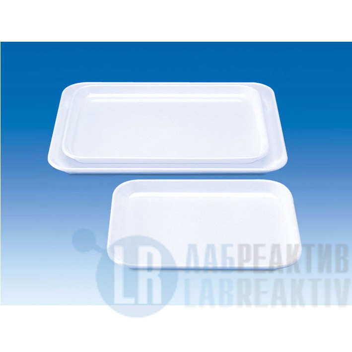Поднос белого цвета, прочный. С закругленными углами и гранями. Удобно использовать для размещения инструментов и чувствительных принадлежностей.