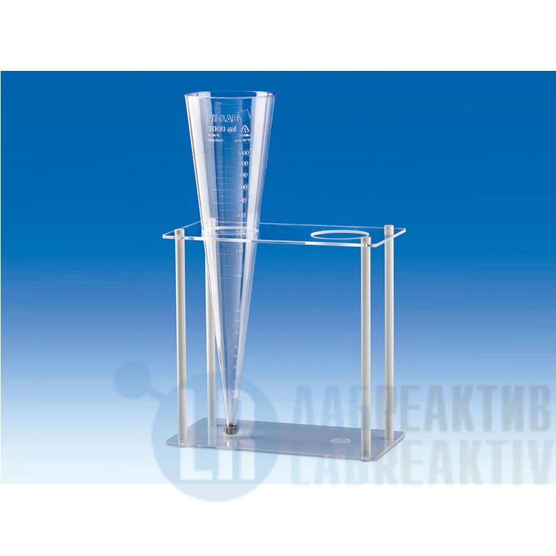 Штатив для 2-х конусов для определения осаждаемости по Имхоффру. Опорная пластина с углублением для точного вертикального расположения седиментационных конусов.