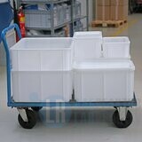 Белый цвет облегчает визуальный осмотр на предмет остатков, а закругленные внутренние края и гладкие поверхности обеспечивают быструю и тщательную очистку. Закрытые углубленные ручки и боковые стенки обеспечивают безопасную транспортировку и хранение самых разных материалов.