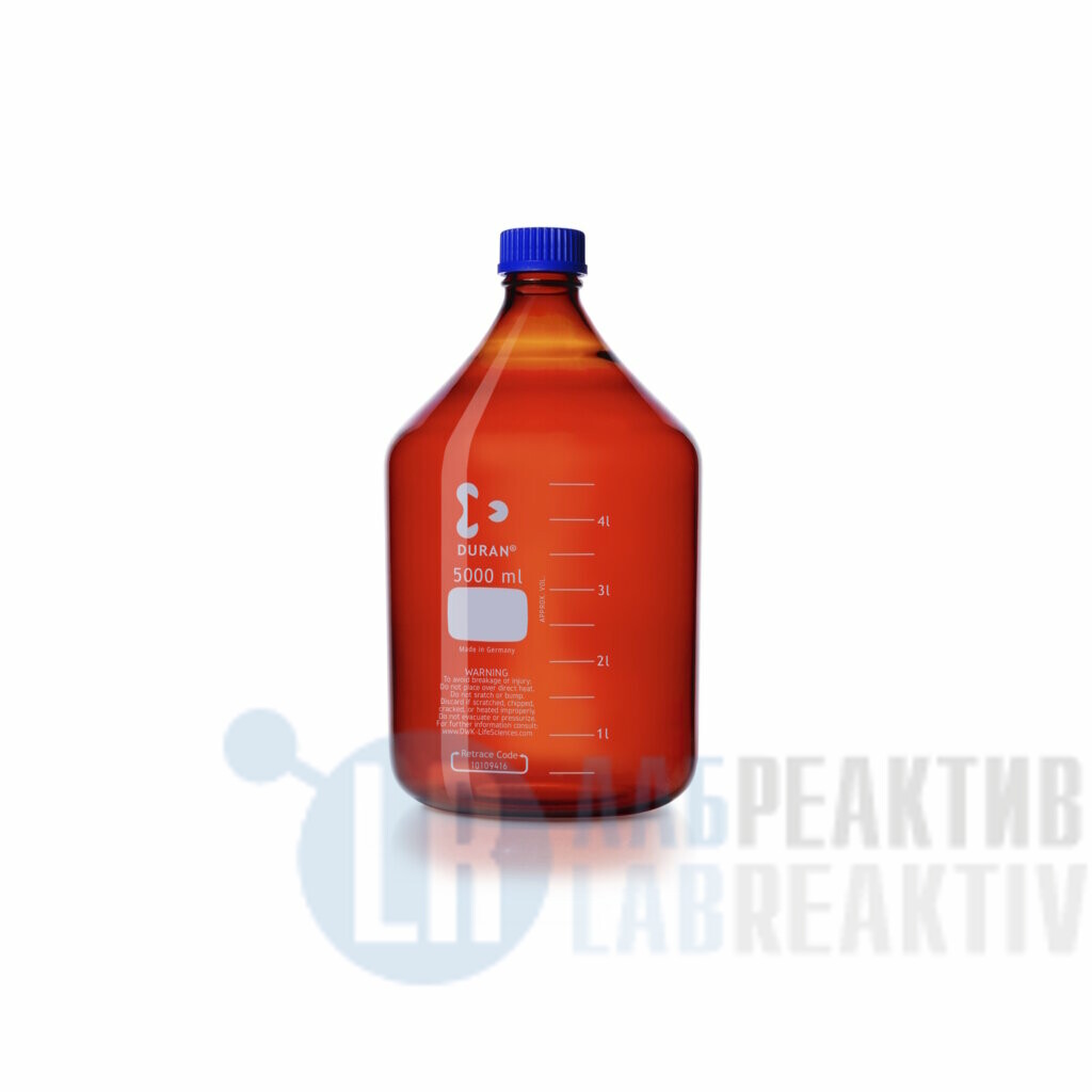Бутыль DURAN® Original 5000 мл, GL45, с завинчивающейся синей крышкой и сливным кольцом, коричневое стекло