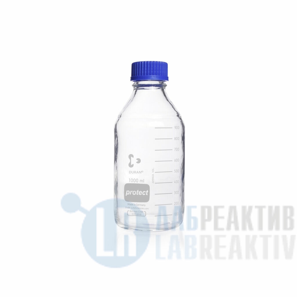 Бутыль DURAN® Protect 1000 мл, GL45, с крышкой и сливным кольцом, с защитным покрытием (PU), бесцветное стекло